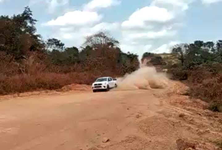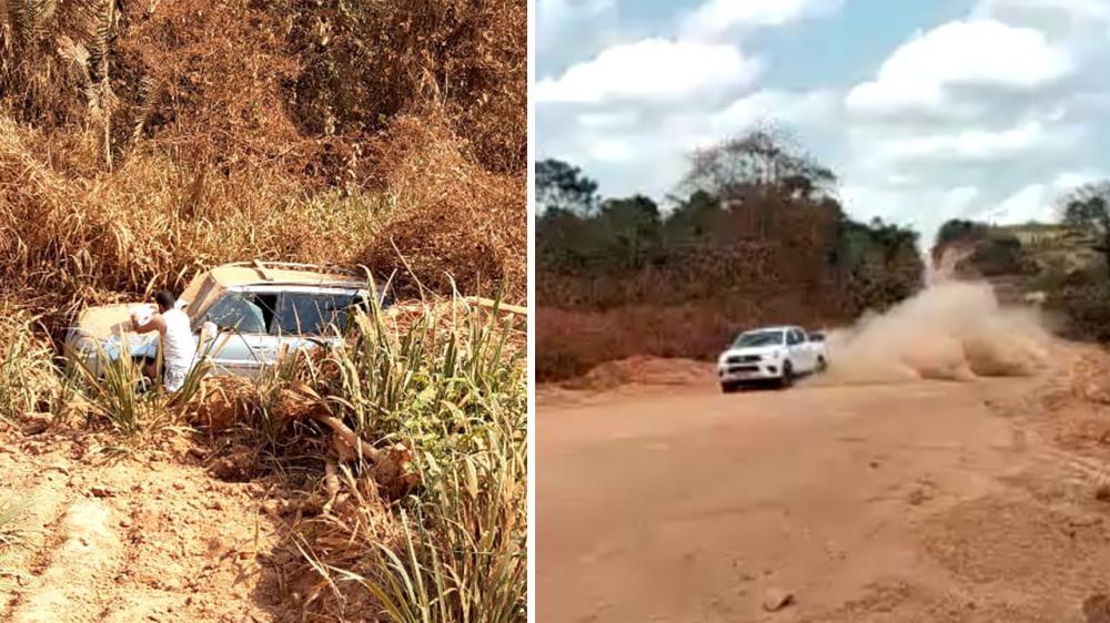 O primeiro acidente ocorreu na manhã de segunda-feira (07), uma caminhonete prata após bater no buraco saiu da estrada e foi parar dentro do mato caindo numa pequena ribanceira.