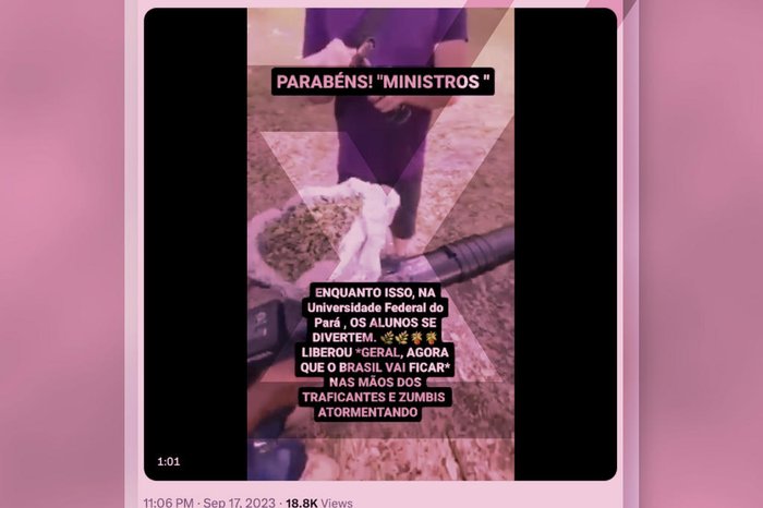 A cena, que tem como trilha sonora a música “Daddy Cool”, do grupo Boney M, foi erroneamente associada à UFPA e à suposta liberação das drogas pelo STF. No entanto, a universidade confirmou que o vídeo não foi gravado em suas instalações. “O vídeo não procede. A filmagem não ocorreu nas dependências da UFPA”, esclareceu a instituição em nota.