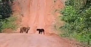 Um motociclista registrou o momento em que duas onças atravessaram uma estrada de terra na zona rural de Anapu, no Pará. O vídeo, compartilhado nas redes sociais, mostra uma onça-pintada e outra de pelagem preta passando pelo local. Ver essa foto no Instagram Uma publicação compartilhada por ParaWebNews (@parawebnews) Segundo o autor da gravação, a … Continue lendo Vídeo: motociclista faz registro raro de duas onças em estrada de terra na zona rural de Anapu