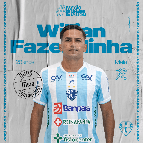 O Paysandu anunciou oficialmente a contratação do meio campista William Fazendinha, ex-jogador do Castanhal. O jogador é um dos reforços do clube para a sequência da Série C do campeonato brasileiro. O meio já está em Belém onde fará uma série de exames clínicos e físicos.